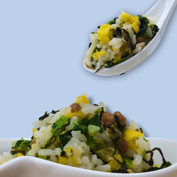 浙江寧波的小炒雪裡紅,上海人稱之為「春不老」,將它與加州玫瑰米搭配‚ 飯香、菜香、蛋香‚層次分明、吃出健康吃出美味!