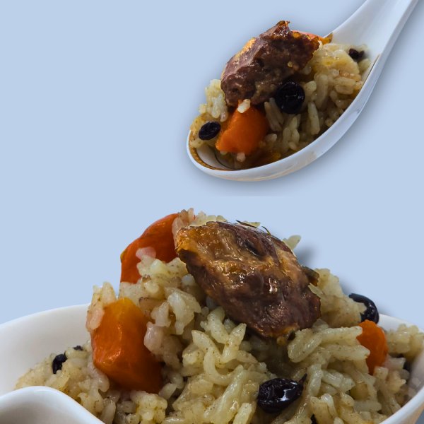 「抓飯」也叫香料飯,是中亞地區的傳統烹調法‚ 將生米加入香料、肉、蔬菜、果乾‚慢慢燜煮而成。